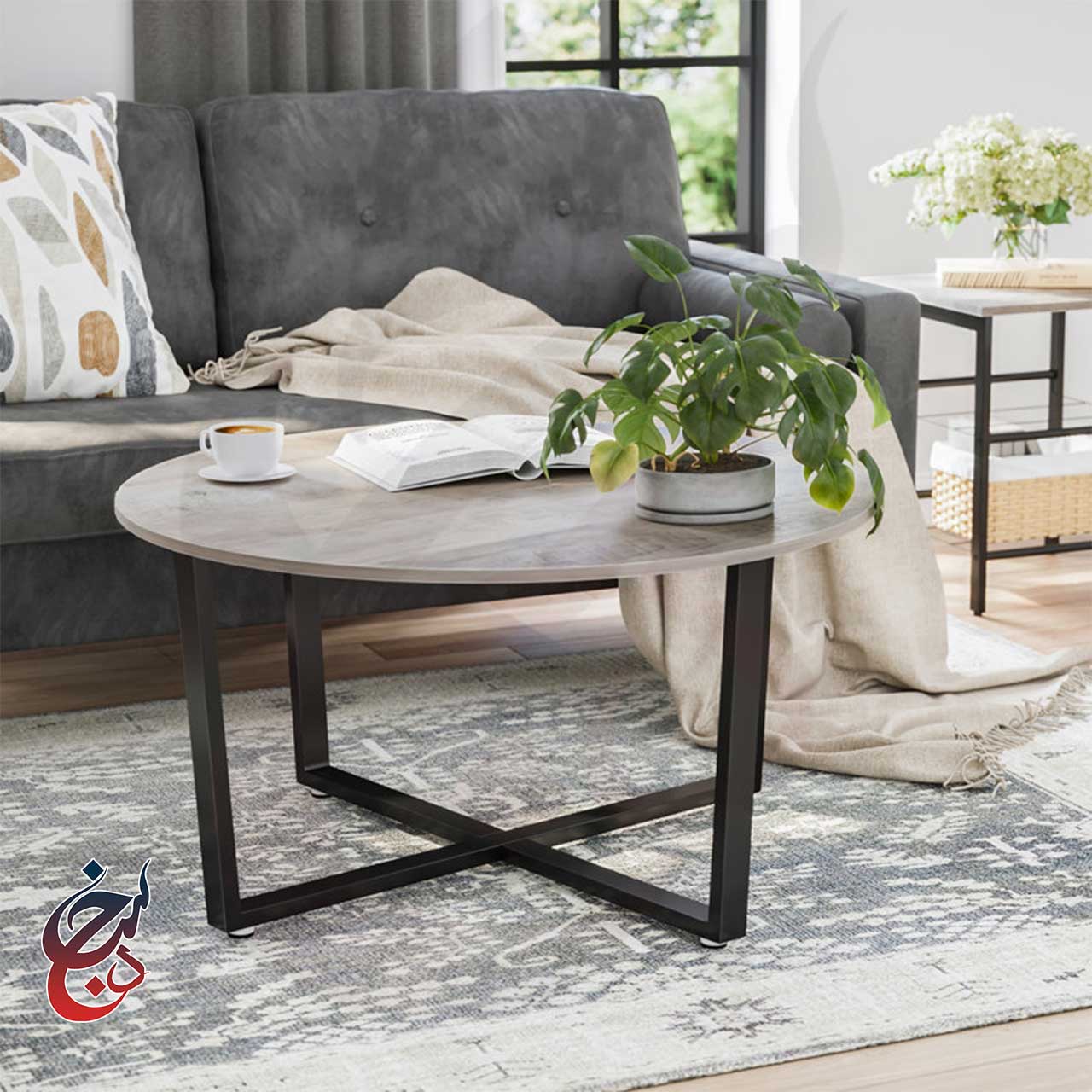 میز جلو مبلی طرح فرانک با صفحه رویه از چوب طبیعی پلای وود قابل سفارش است و پایه های این جلو مبلی گرد نیز با جوش CO2 و رنگ کوره ای الکترواستاتیک ساخته می شوند.